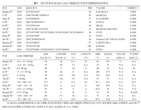 国内外部分BCMA CAR-T细胞治疗多发性骨髓瘤的临床研究