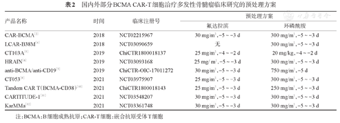 国内外部分BCMA CAR-T细胞治疗多发性骨髓瘤临床研究的预处理方案