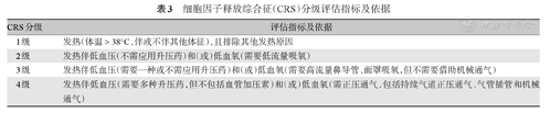 细胞因子释放综合征(CRS)分级评估指标及依据