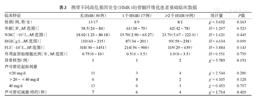 携带不同高危基因突变(HMR)的骨髓纤维化患者基础临床数据