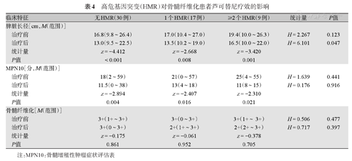 高危基因突变(HMR)对骨髓纤维化患者芦可替尼疗效的影响