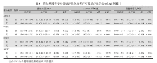附加基因突变对骨髓纤维化患者芦可替尼疗效的影响[M(范围)]