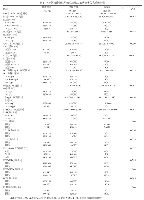 790例初诊急性早幼粒细胞白血病患者的实验室特征