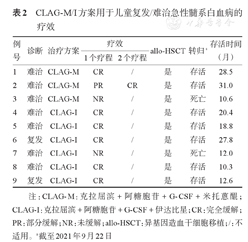 | 1 | 难治 | CLAG-M | CR | / | 是 | 存活 | 28.5 |