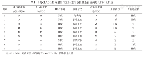 9例CLAG-M/I方案治疗复发/难治急性髓系白血病患儿的不良反应