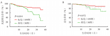 采用SPSS 22软件进行数据分析,分类变量采用例数(百分比)表示,连续性变量采用均值或中位数(范围)表示。采用t检验、近似t检验、非参数秩和检验比较组间差异,率的比较采用χ2检验。生存曲线应用Graphpad Prism 8.0软件绘制,采用Log-rank检验比较生存差异。P<0.05为差异有统计学意义。