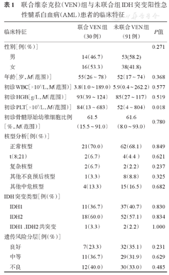 联合维奈克拉(VEN)组与未联合组IDH突变阳性急性髓系白血病(AML)患者的临床特征