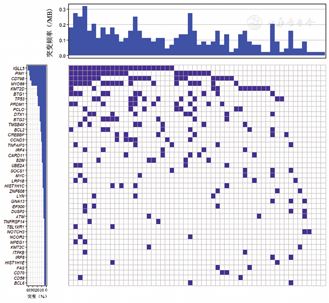 在DEL患者中,56例患者进行了高通量测序基因突变检测,检测的基因包括B2M、BCL2、BCL6、CARD11、CD79A、CD79B、KMT2D、MYC、MYD88、PIM1、STAT6、TP53等55个基因。