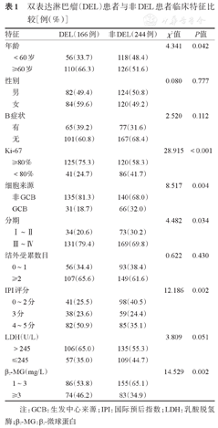 双表达淋巴瘤(DEL)患者与非DEL患者临床特征比较[例(%)]