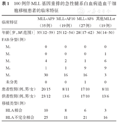 100例伴MLL基因重排的急性髓系白血病造血干细胞移植患者的临床特征