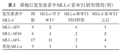 | 复发患者中MLL-r+ | 例数 | MLL-r+早于WT1+ | MLL-r和WT1同时转阳 | MLL-r+在WT1+之后 |