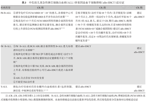 中危组儿童急性淋巴细胞白血病(ALL)异基因造血干细胞移植(allo-HSCT)适应证