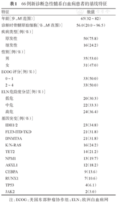 66例新诊断急性髓系白血病患者的基线特征