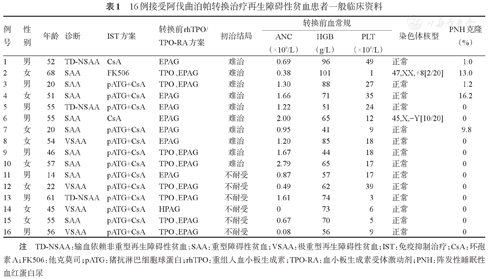 16例接受阿伐曲泊帕转换治疗再生障碍性贫血患者一般临床资料