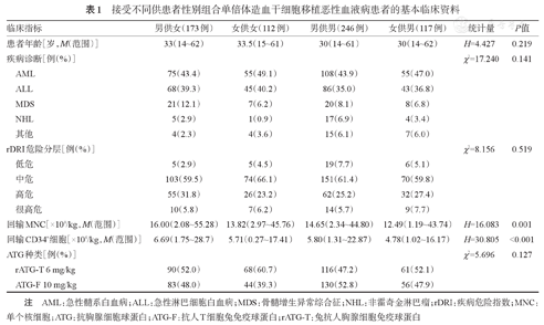 探究供患者性别组合对基于抗胸腺细胞球蛋白(ATG)和单纯外周血干细胞(PBSC)来源单倍体造血干细胞移植(haplo-HSCT)治疗恶性血液病移植结局的影响。