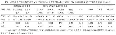 注:haplo-HSCT:单倍体造血干细胞移植;GVHD:移植物抗宿主病,aGVHD、cGVHD分别为急、慢性GVHD;CIR:累积复发率;NRM:非复发死亡率;OS:总生存;DFS:无病生存