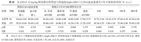 注 rATG-T:兔抗人胸腺细胞球蛋白;haplo-HSCT:单倍体造血干细胞移植;GVHD:移植物抗宿主病,aGVHD、cGVHD分别为急、慢性GVHD;CIR:累积复发率;NRM:非复发死亡率;OS:总生存;DFS:无病生存