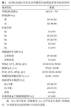 66例CEBPA双突变急性髓系白血病患者基本临床资料