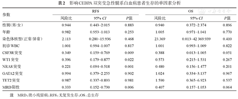 影响CEBPA双突变急性髓系白血病患者生存的单因素分析
