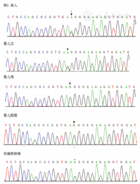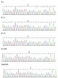 例1检出PROC基因c.1032(exon9)C>G和c.400+5G>A 2个突变位点,验证父母均为杂合子突变,姐姐正常,异卵双胞胎妹妹为单杂合子突变(图1、图2)。例2检出PROC基因c.1310(exon9)A>C、c.181(exon3)delG 2个突变位点(图3、图4),未进行家系验证(患儿为弃婴)。以上4个PROC基因突变位点除c.400+5G>A外,均为首次报道。
