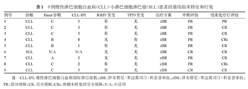 9例慢性淋巴细胞白血病(CLL)/小淋巴细胞淋巴瘤(SLL)患者的基线临床特征和疗效