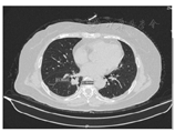 患者女,67岁,于1980年至2003年在某石棉工厂车间内从事织绳、织布工作,期间密切接触石棉纤维(23年)。脱离石棉环境15年后发病,同工种工人中已有多人诊断为恶性间皮瘤。