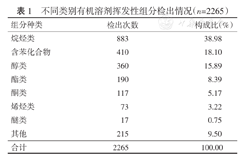 不同类别有机溶剂挥发性组分检出情况(n=2265)
