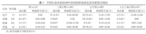 不同行业有机溶剂中高风险职业病危害因素检出情况
