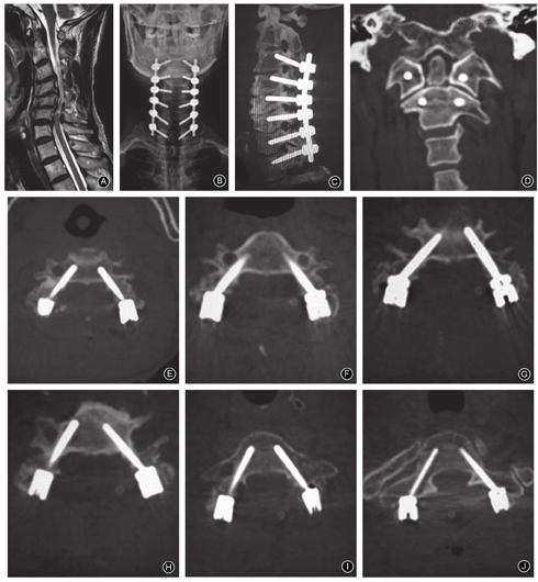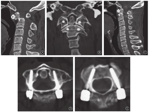 排除标准:①行单纯前路内固定、后路侧块螺钉、椎板螺钉及棘突螺钉固定的手术患者;②合并严重骨质疏松症,累及颈椎后部结构的感染者;③颈椎椎弓根破损或被肿瘤侵蚀,椎弓根存在先天畸形、解剖变异、椎动脉孔畸形无法安全置钉者。