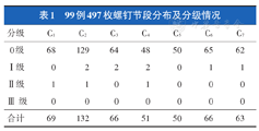 99例497枚螺钉节段分布及分级情况