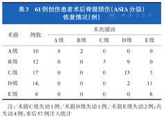 61例创伤患者术后脊髓损伤(ASIA分级)恢复情况(例)