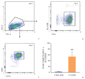 再使DC荷载合成的HLA-A0201限定MAGE-A多肽(序列为YLEYRQVPV)[15]和NY-ESO-1多肽(序列为SLLMWITQC),可获得提呈MAGE-A家族及NY-ESO-1的DC。获得后,可使用流式细胞仪鉴定DC的纯度。
