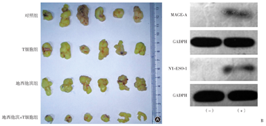 将肿瘤组织进行Western Blot并长时间曝光可发现,DAC治疗后肿瘤组织的MAGE-A家族以及NY-ESO-1的表达可被检测到(图8),说明治疗后骨肉瘤移植瘤的CTA表达得到了显著提高。