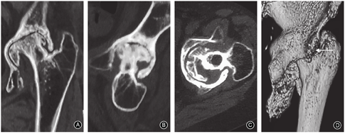 报道1例类风湿关节炎继发髋臼骨盆内陷合并股骨颈骨折病例。患者既往有类风湿关节炎病史38年,屈髋拾物时出现左髋疼痛和异响就诊。通过病史、体格检查和影像学检查确诊为类风湿关节炎继发髋臼骨盆内陷合并左侧股骨颈骨折。采用人工全髋关节置换术,术中髋关节脱位、取出股骨头、髋臼重建、臼杯固定和骨量评估是技术性难题。通过文献复习,本例属于继发性髋臼骨盆内陷,可能与类风湿关节炎引起的髋臼软化有关。来自股骨头的压应力超出软化髋臼的承受力时,髋臼突入盆腔,且逐渐包绕股骨头。以此病理改变为基础,推测导致该例患者出现股骨颈骨折的暴力原因为屈髋拾物动作引起的股骨颈-髋臼缘的直接撞击。术中使用螺旋臼假体,既实现了假体的初始稳定性,又保留了髋臼周围的骨量。