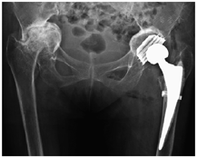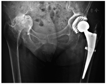 由于髋臼内陷的存在,全髋关节置换术可能很难提供理想的初始稳定性[5]。但也有研究通过植骨恢复骨床和多孔钽金属臼杯的全髋关节置换术取得了满意疗效[4,6]。因此,在恰当地选择假体以及熟练掌握手术技术的前提下,全髋关节置换术也可以用于治疗类风湿关节炎继发髋臼骨盆内陷病例。