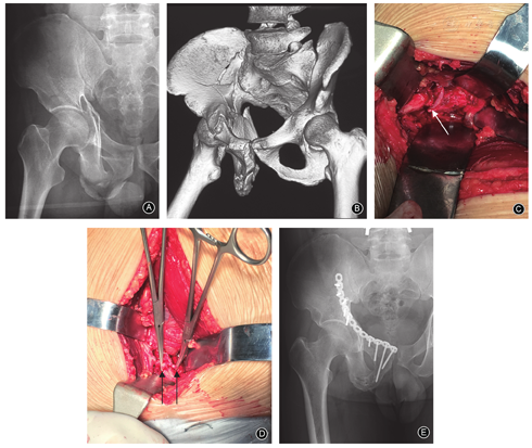 入院后行骨盆正位、闭孔位、髂骨位X线检查、CT平扫及三维重建检查。检查血常规、凝血功能、肝肾功能等进行术前评估,结果显示本组患者均可耐受手术。行心电图、肺部X线及双下肢深静脉彩超检查,本组2例怀疑有腰骶神经损伤行MRI、肌电图等检查,详细了解患者全身及骨折情况。