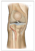 患者全麻或腰麻后,取仰卧位,患肢屈髋、屈膝约30°~40°,小腿处于旋转中立位。