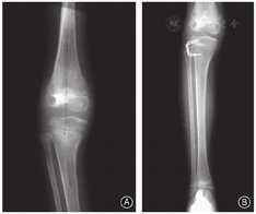 我们收治1例小儿蜡泪样骨病导致膝关节严重外翻畸形和髌骨顽固性脱位患者,当时误诊为陈旧性后外旋转脱位合并髌骨脱位和条纹状骨病,经手术成功复位和矫形,术后随访19年。经文献检索2014年Kitta等[5]报告1例小儿蜡泪样骨病导致膝关节严重外翻畸形和顽固性髌骨脱位患者,症状与本例几乎相同,经手术治疗成功复位和矫形。他们提出,对小儿蜡泪样骨病导致的膝关节严重畸形和髌骨顽固性脱位,手术复位和矫形治疗应在骨骺闭合前尽早实施。