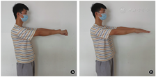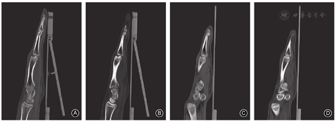 右手无明显发红、无外观畸形,中指、环指的掌指关节局部轻度肿胀、触痛明显,疼痛视觉模拟评分(visual analogue scale,VAS)为5分,伴有轻微的骨擦感;第3、4掌指关节主被动活动明显受限,主动屈曲至70°、伸直受限于30°;上肢功能障碍评分(disabilities of the arm, shoulder and hand,DASH)为6.6分,右手抓握力约为健侧的60%。
