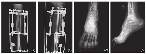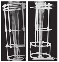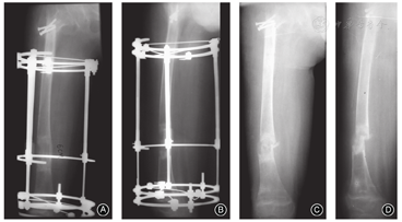 延迟愈合和不愈合指新骨矿化时间长于正常愈合指数,应根据新骨直径、连续性、矿化程度和力学强度进行相应处理。如可实施"手风琴"技术[27],必要时行自体骨移植。如X线片显示肥大性骨不连,提示外固定器械失稳,应及时更换钢针、增加连杆或改变构型等。