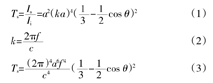 式中:Is为散射声强,Ii为入射声强,a为散射体的半径,θ为散射方向与入射方向的夹角,f为超声频率,c为声速。