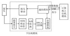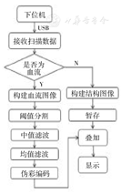 计算机上位机模块在接收到下位机模块经USB接口上传的血流信息数据和原结构信息数据后分别缓存,当完成整幅图像的扫描和上传后,在上位机重建以形成血流图和结构图。