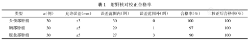 分析头颈部、胸部、腹部各30例肿瘤患者进行射野核对后的误差以及校正后的误差,头颈部肿瘤在X、Y、Z方向误差均≤3 mm,胸腹部肿瘤在X、Y、Z方向误差均≤5 mm。