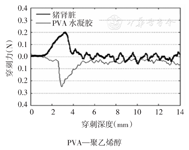 该水凝胶是由PVA、去离子水、环氧氯丙烷、氢氧化钠、氯化钠和二甲基亚砜按一定比例和次序进行溶解,经数次冷冻、解冻后得到的透明的富含水分的固体仿生材料。采用荷兰飞利浦公司生产的XL-SERIES扫描电镜进行材料内部结构扫描实验。以改变原材料中的氯化钠含量为例,通过电镜扫描图像,可以看到不同化学成分配比下的水凝胶的内部结构具有明显的差异(图2);再以猪肾脏与特定配比水凝胶的截面电镜扫描图为例进行对比(图3),发现两者内部结构非常相似,说明通过控制化学成分的比例可得到与特定生物组织内部结构相近的仿生水凝胶。进而对比猪肾脏与特定成分水凝胶在穿刺过程中的力学特性(图4),可看出两组穿刺力的大小及变化规律很接近,说明这种成分配比下的PVA水凝胶与猪肾脏的生物力学特性十分吻合,可以将其应用于实验中。经过多次实验分析,证明这种新型PVA水凝胶能在实验室条件下通过控制成分配比得到满足不同单体器官力学特性的仿生材料;并且该水凝胶是富含水分的透明固体,具有很好的超声及核磁成像效果,在实验中亦能很好地观察进针过程,从而满足盆腔内各单体器官模型的制作要求。