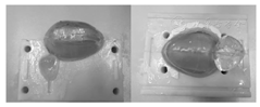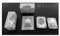 Yi曾采用CT断层扫描图像对男性盆腔内器官进行了三维重建,这里采用辨识精度更高的核磁共振图像进行盆腔器官群三维重建[6]。本研究采用的MR图像数据除前列腺体外,仅选择膀胱、直肠、闭孔内肌、肛提肌这些在穿刺手术中对前列腺位置及形变产生较大影响的器官作为三维重建和优化处理的对象。单体器官的浇铸模具采用3D打印结合激光烧结快速成型技术制作完成。前列腺及膀胱实体模型浇铸模具如图5。