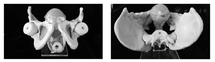 单体器官的材料选择需着重考虑材料的仿生力学性能。通过调整PVA水凝胶的成分配比及制作工艺,得到满足盆腔内不同组织器官力学特性的水凝胶,分别进行盆腔内单体器官的制作。图6为制作完成的前列腺和膀胱单体模型。以人体真实解剖结构为依据,将各单体器官逐一装配在骨盆模型内(图7)。