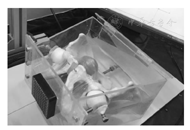 为模拟真实人体内环境,同时便于进行实验研究,将器官群模型放在有机玻璃箱体中,并在箱体内填充琼脂糖。由于琼脂糖在常温下为透明固体,且其弹性模量很小,因此能达到提供器官群支撑力的作用且不影响穿刺力。箱体前端面留有开口,并在开口处粘附一层硅胶薄膜以模拟人体皮肤,可达到模拟会阴经皮穿刺手术的效果。完整的男性盆腔器官群实体模型如图8所示。