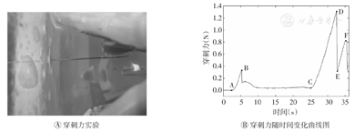 穿刺手术中变化的穿刺力和组织形变是影响穿刺精度的两个重要因素。笔者通过基于搭建好的男性盆腔器官群实体模型进行柔性针穿刺实验,包括穿刺力实验和穿刺变形实验,以验证模型的科学性和实用性。