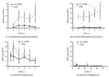 与相同时间点的皮肤比较,aP<0.05