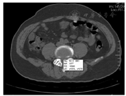 CT值是测定人体某一局部组织或器官密度大小的一种计量单位,通常称亨氏单位(hounsfield unit, HU)。CT值可反映腰椎间盘突出组织的属性,对腰椎间孔镜技术和射频介入治疗通道的制定和手术方案的选择至关重要。依据定位的责任靶点,标记CT值可准确反映腰椎间盘突出的病理类型、突出物的精确位置及突出的严重程度,从而为LDH的诊断和手术治疗方法的选择及实施提供重要的参考依据。